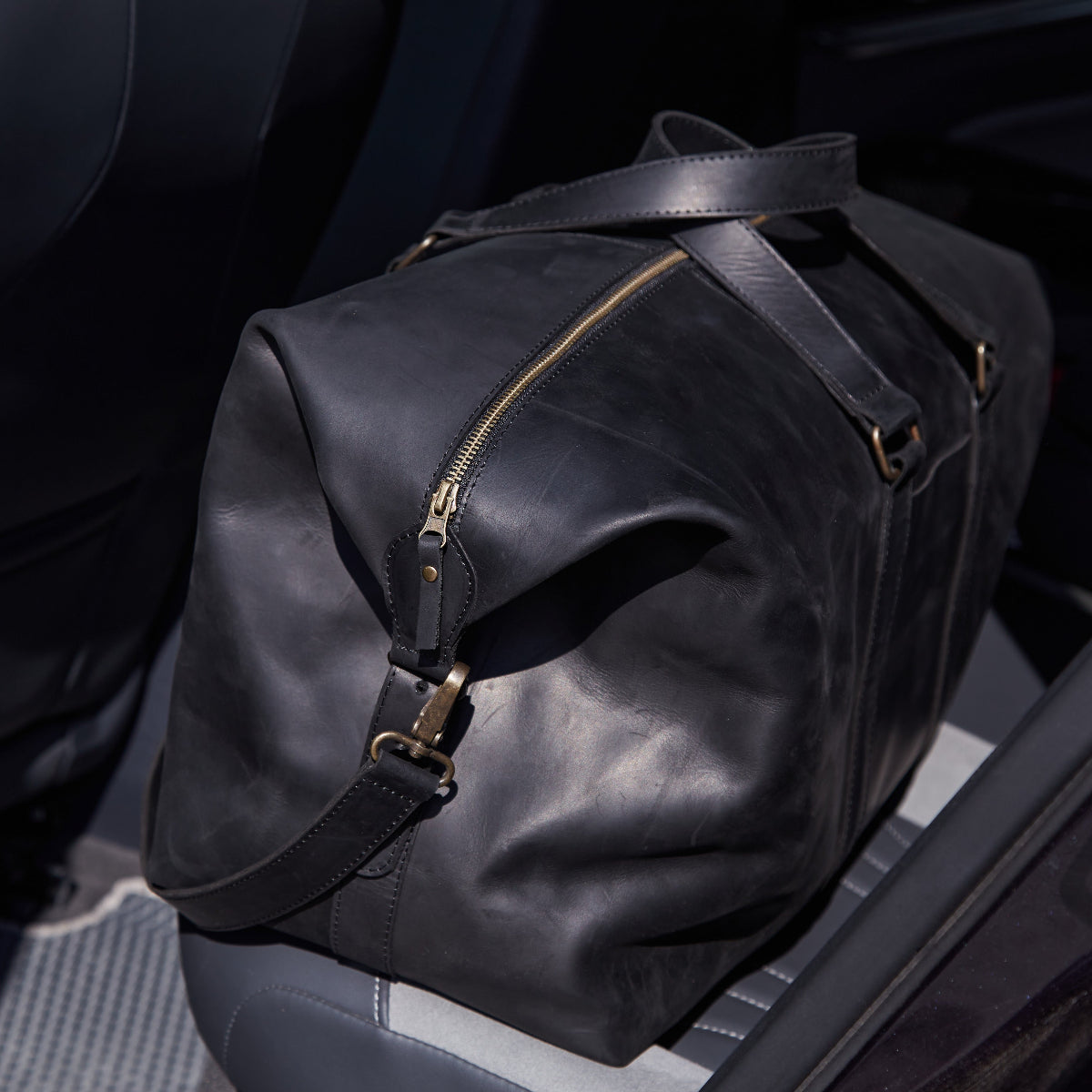 Велика дорожня сумка з плечовим ременем All In виготовлена з вінтажної шкіри чорного кольору. Має дві зовнішні кишені, дві зручні ручки та плечовий ремінь, який зручно регулюється за довжиною та за потреби відстібається.
