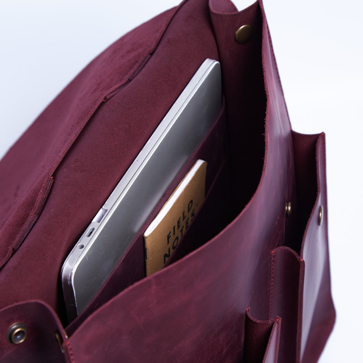 Внутрішній простір без підкладки. Всередині — містке відділення для ноутбука, а також дві менші кишені для дрібниць.