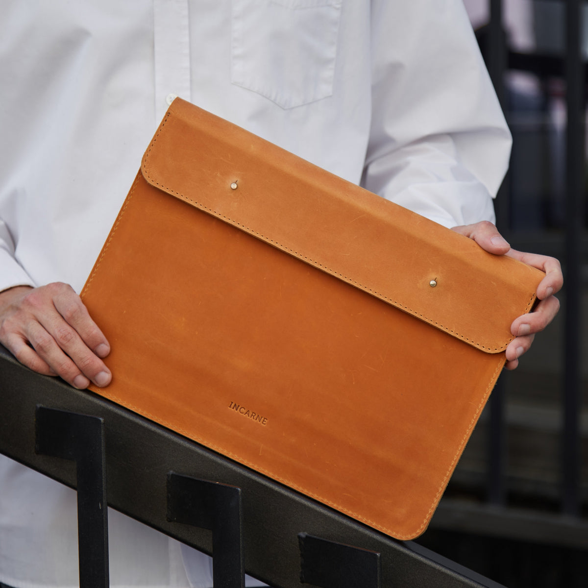 Місткий та зручний шкіряний чохол для MacBook 2024 та інших моделей ноутбуків. Може бути доповнений плечовим ременем. Стильний та функціональний аксесуар для подорожей та повсякденного використання.