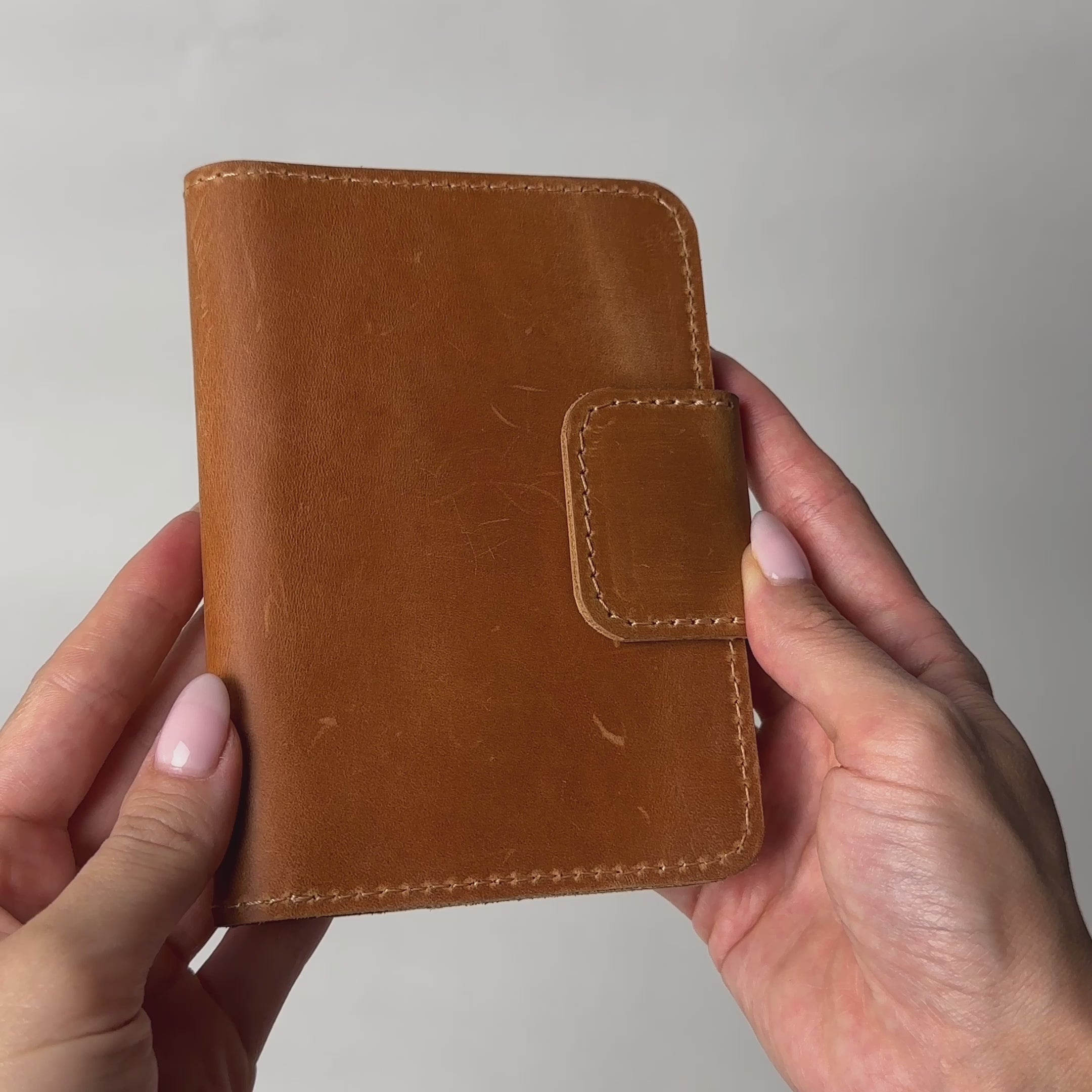 Чехол для паспорта «Smart Journey» изготовлен из натуральной винтажной кожи. Закрывается с помощью скрытого магнита. Внутри имеет широкие кожаные карманы, которые надежно удерживают страницы паспорта и могут использоваться для хранения банкнот. Дополнительно чехол имеет 3 слота для банковских карт. Для крепления AirTag предусмотрена специальная кармашка, в которую устройство легко помещается и надежно удерживается.