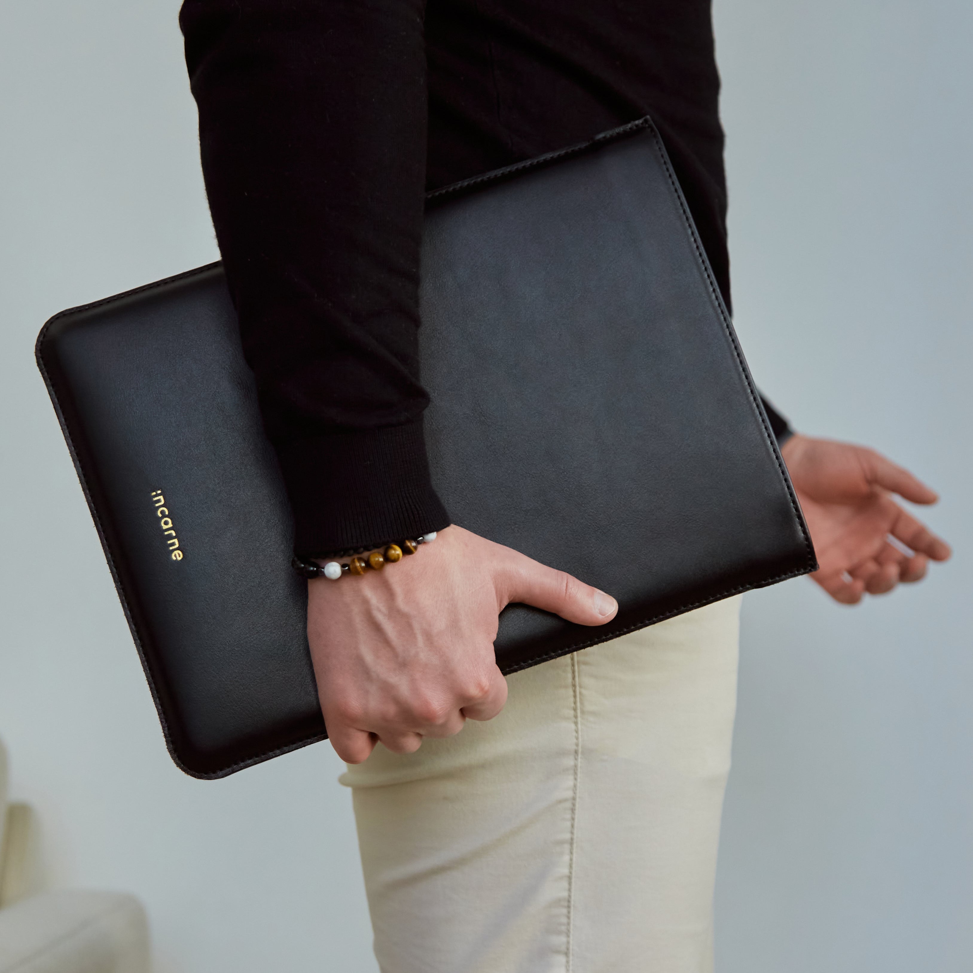 Кожаный чехол для MacBook ClineUp изготовлен из натуральной кожи универсального черного цвета. Внутри – мягкая бархатная подкладка и специальный тонкий амортизирующий материал, дополнительно защищающий устройство.
