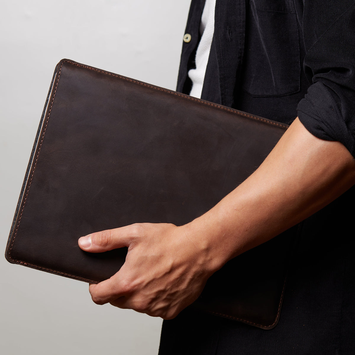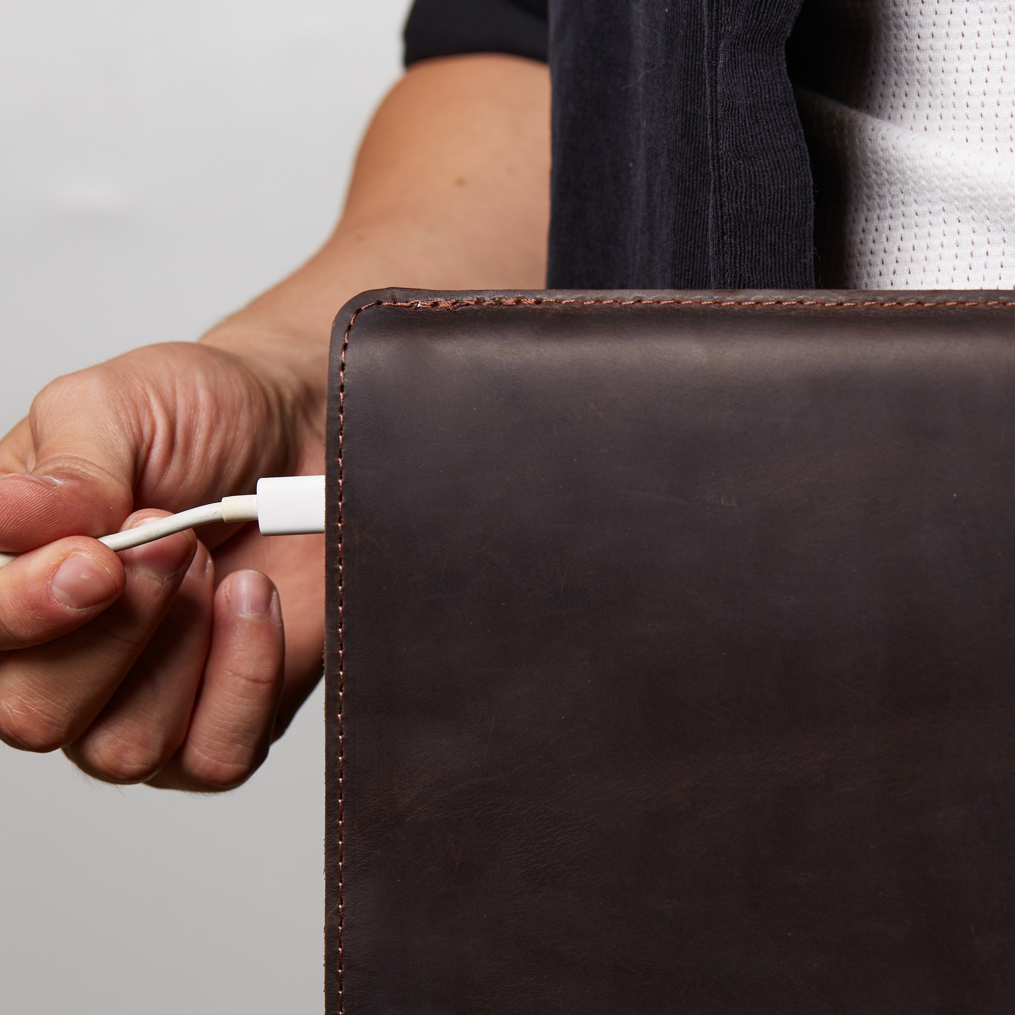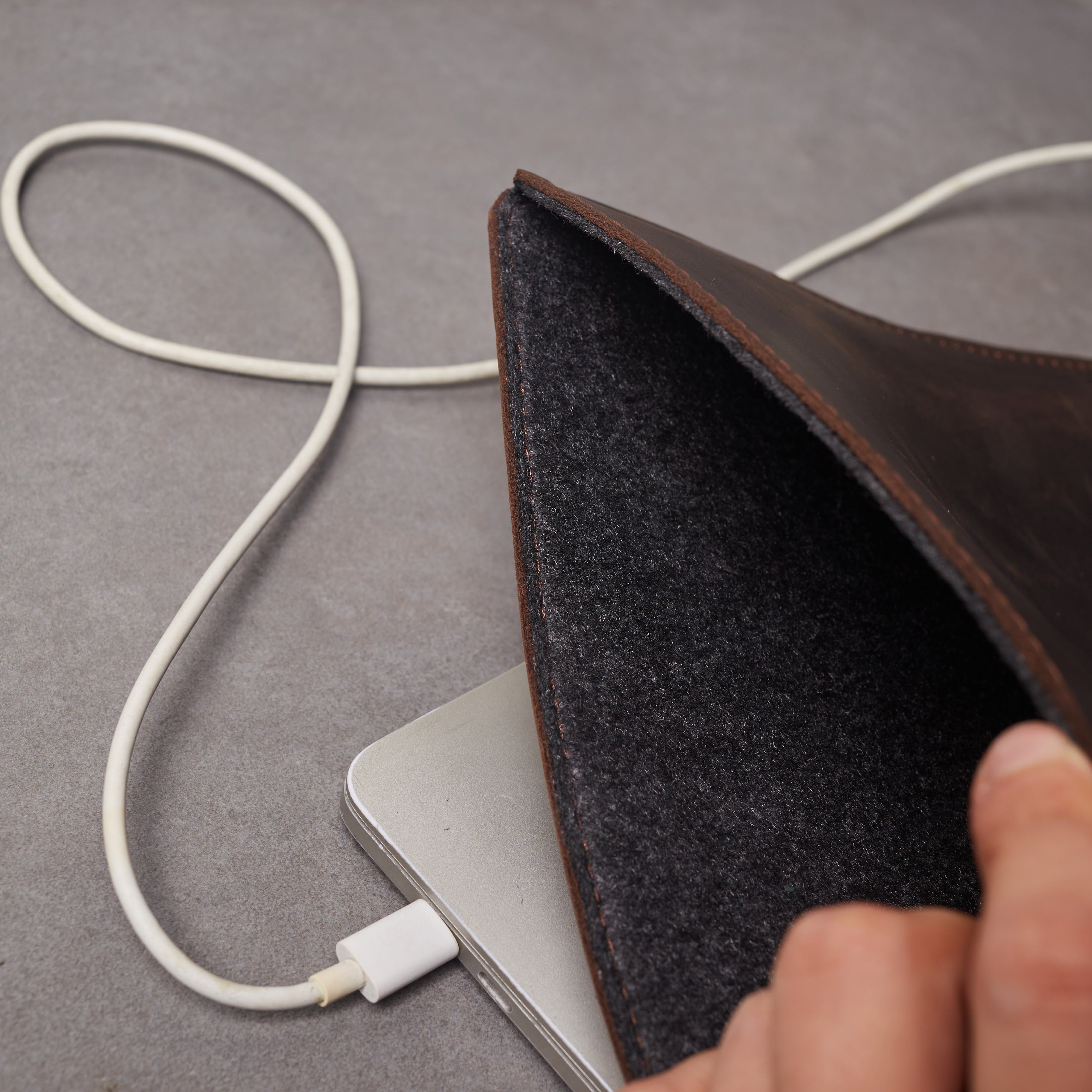 Чехол для Макбука и ноутбуков других брендов Free Port Plus от INCARNE™. Изготовлен из натуральной винтажной кожи изысканного коричневого цвета. Чехол имеет лаконичный дизайн и тонкий силуэт. Есть возможность заряжать MacBook, не вынимая из чехла. Мягкая фетровая подкладка обеспечивает надежную защиту устройства.