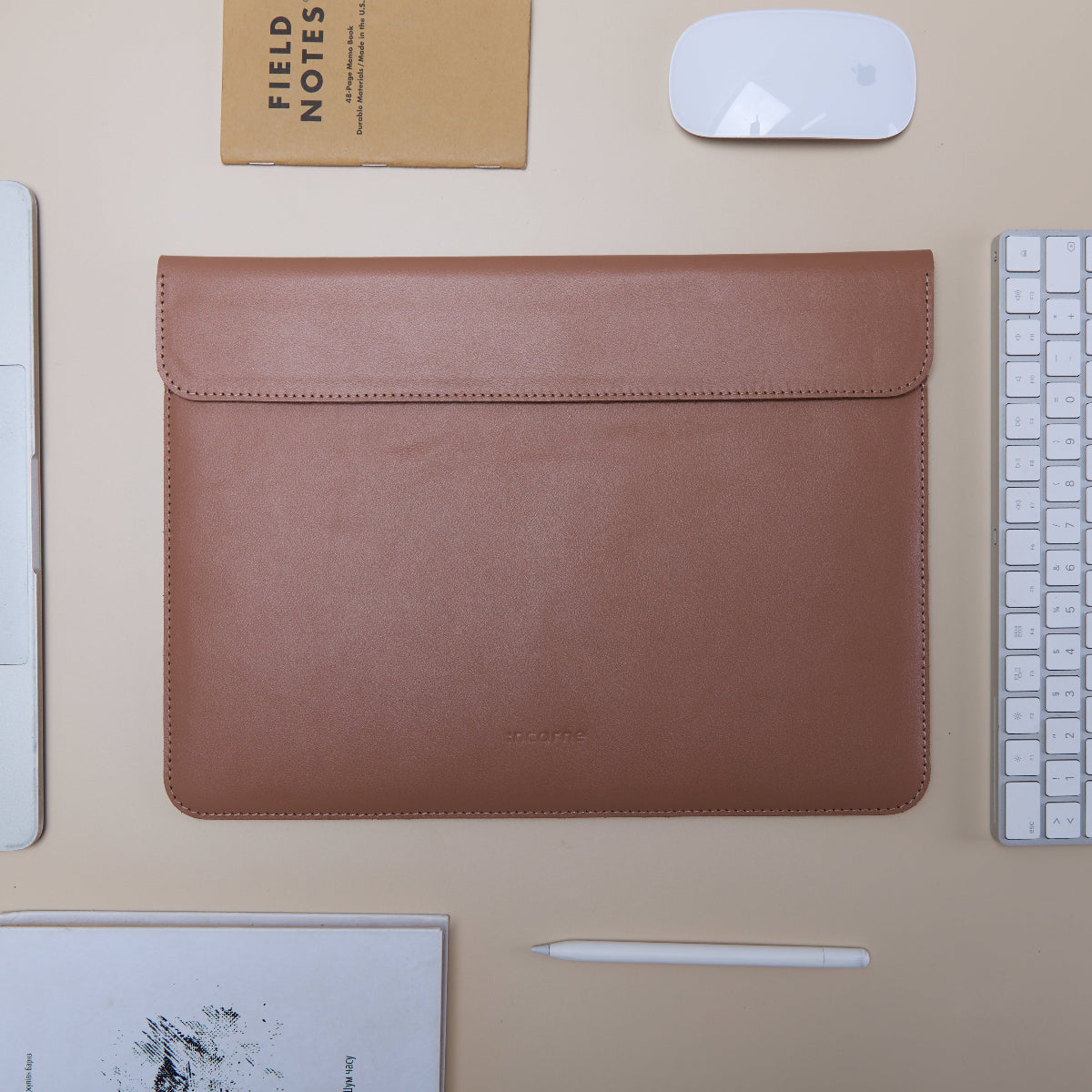 Чехол для MacBook Klouz цвета мокка станет изысканным дополнением образа – от делового до повседневного, делая использование ноутбука комфортным и безопасным.