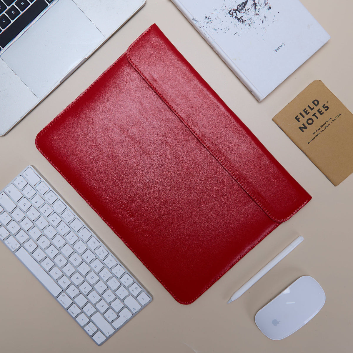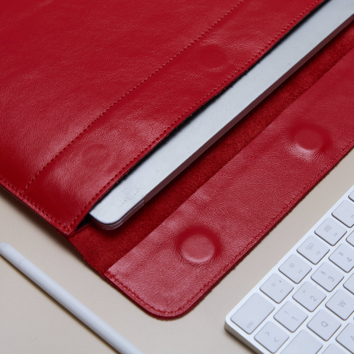 Красный кожаный чехол Klouz доступен для MacBook Pro и Air, а также ноутбуков других брендов. Он станет ярким акцентом в вашем повседневном образе.